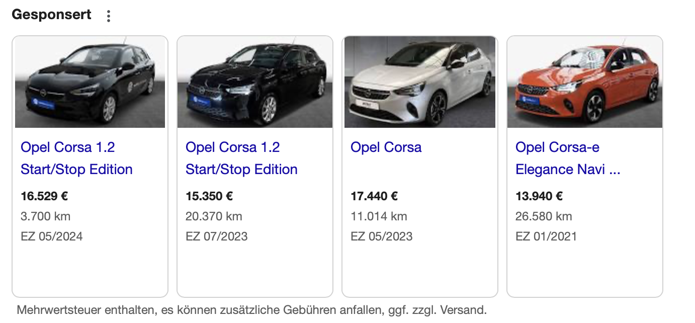 Biete Deine Fahrzeuge aus dem Shopicar-Shop direkt in Google an